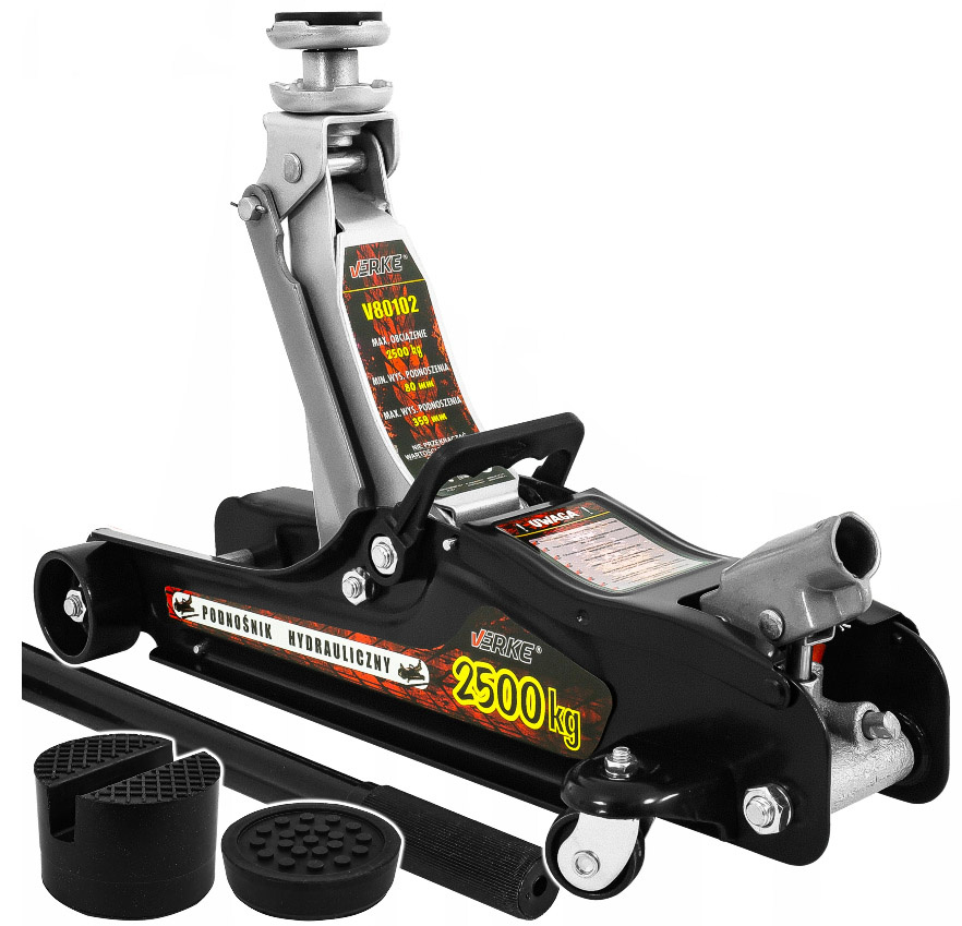 Nízkoprofilový hydraulický zvedák o nosnosti 2500kg. Nízký profil je předurčen pro sportovní automobily a auta se sníženým podvozkem