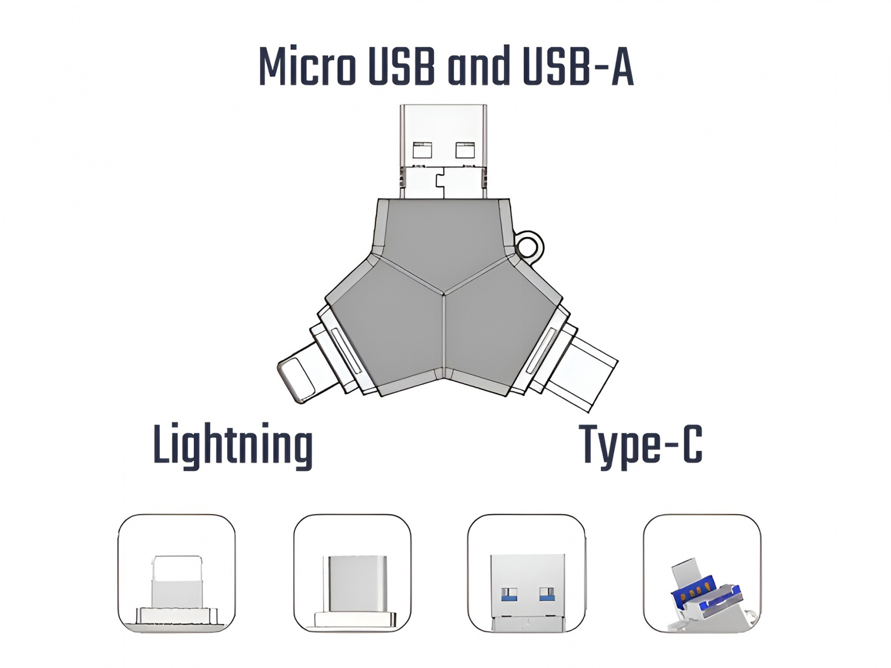Lehký a odolný USB flash disk s konektory Apple Lightning, Micro USB, USB-C a USB 3.0 je ideálním řešením pro snadný přenos a zálohování dat. K dispozici ve variantách 32 GB, 64 GB nebo 128 GB umožňuje rychlý a spolehlivý přenos souborů mezi různými zařízeními – od telefonů po počítače.