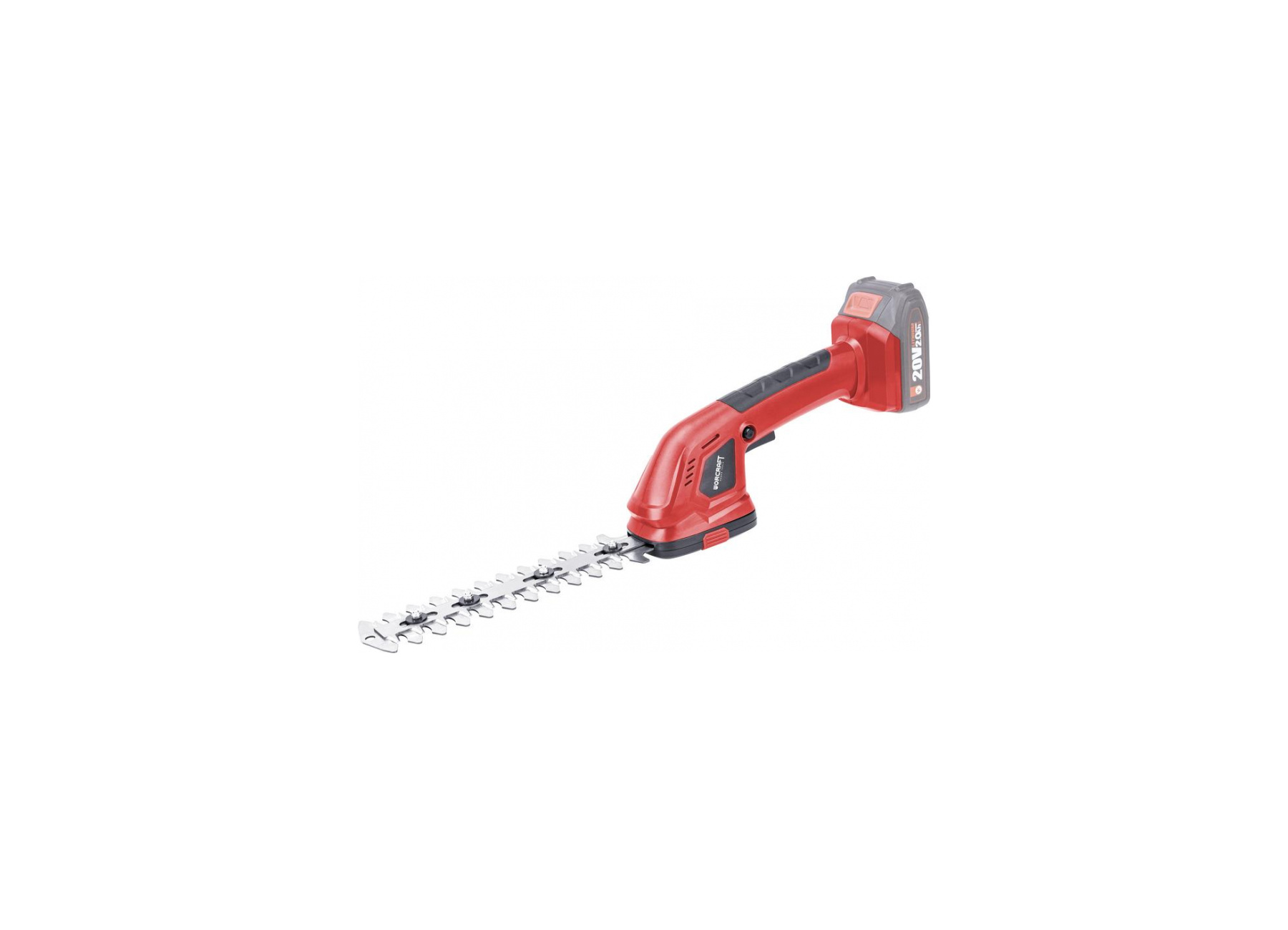 Akumulátorové nůžky Worcraft CGS-S20LiC 2v1 na živý plot a trávu jsou s použitím čepele pro stříhání trávy určeny ke stříhání trávy podél budov, chodníků, obrubníků, v mezerách mezi stavebními prvky a u objektů, u kterých nelze trávu zcela posekat vyžínačem. Např. kolem kmenů stromů, nohou laviček a pod. S použitím čepele pro stříhání živého plotu lze zastřihávat drobné větvičky živého plotu. Počet kmitů: 1300/min. Šířka záběru při použití s nůžkami na trávu: 95 mm. Šířka záběru při použití s nůžkou na živý plot: 200 mm, rozestup zubů: 8 mm.