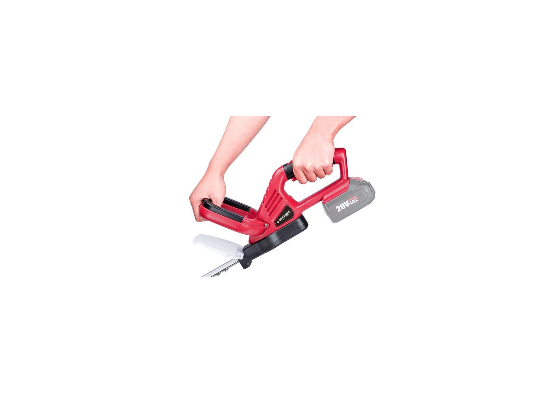 Akumulátorové nůžky Worcraft CHT-S20LiA jsou určeny ke stříhání živých plotů, keřů a křovin. Nůžky s lištou dlouhou 51 cm disponují délkou zubu 20 mm. Výkonné nůžky pracují rychlostí 1200 otáček za minutu. Nůžky jsou vybaveny protiskluzovou rukojetí, která zajišťuje pevné a pohodlné uchopení. Bezpečnostní čepel má zaoblené boky pro snížení nebezpečí poranění. Dodatečná ochrana proti nárazům zabrání nepříjemnému zpětnému rázu, kdy se čepel dostane do styku se zdí nebo plotem.