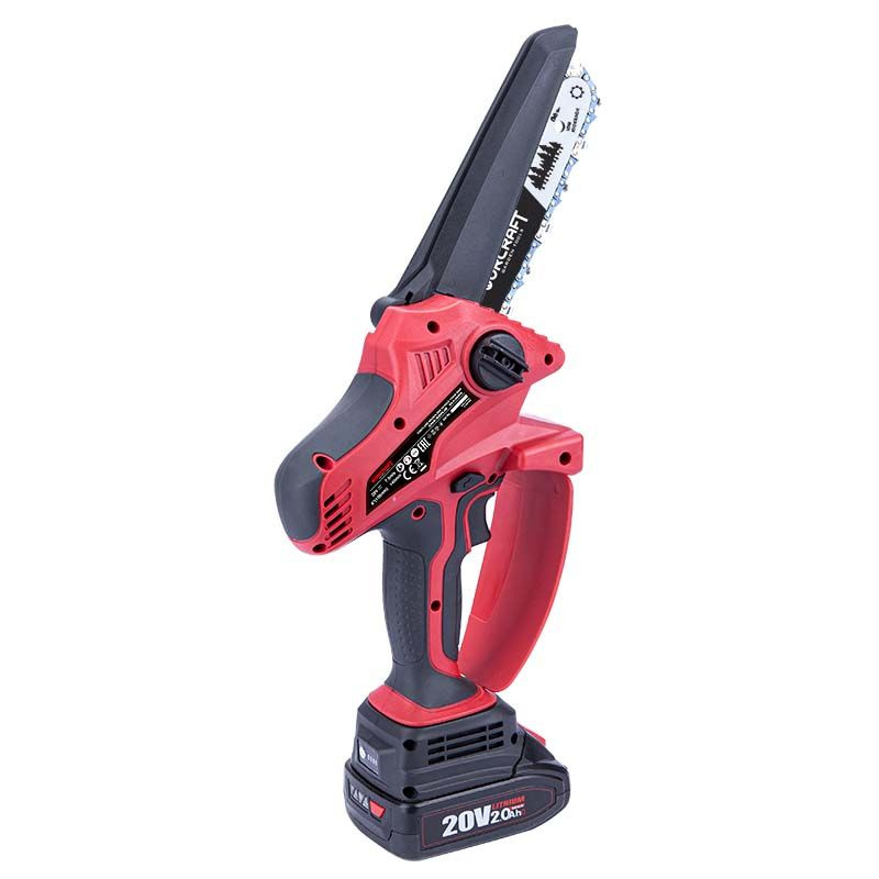 Aku řetězová pila cm Worcraft (S20Li) CHS-S20LiB, malá ruční akumulátorová pila, určená pro práce na zahradě/při údržbě pozemku apod. (prořezávání větví, kácení stromků/keřů, příprava drobného palivového dřeva atd.)